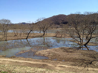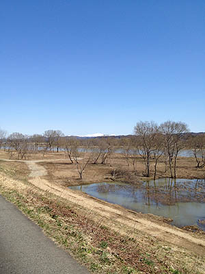 4月15日からさくらまつりが始まるけど、こっち岸から見た展勝地は、まだまだって感じ。