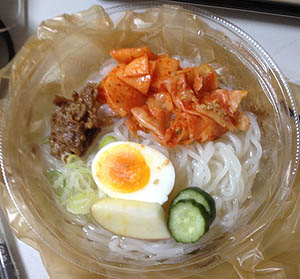 息子がコンビニで冷麺を買って食べた、美味しかった、って。