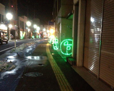 12日の夜に通ったのだが、なんだこのイルミーション、と思ってスマホで撮影。