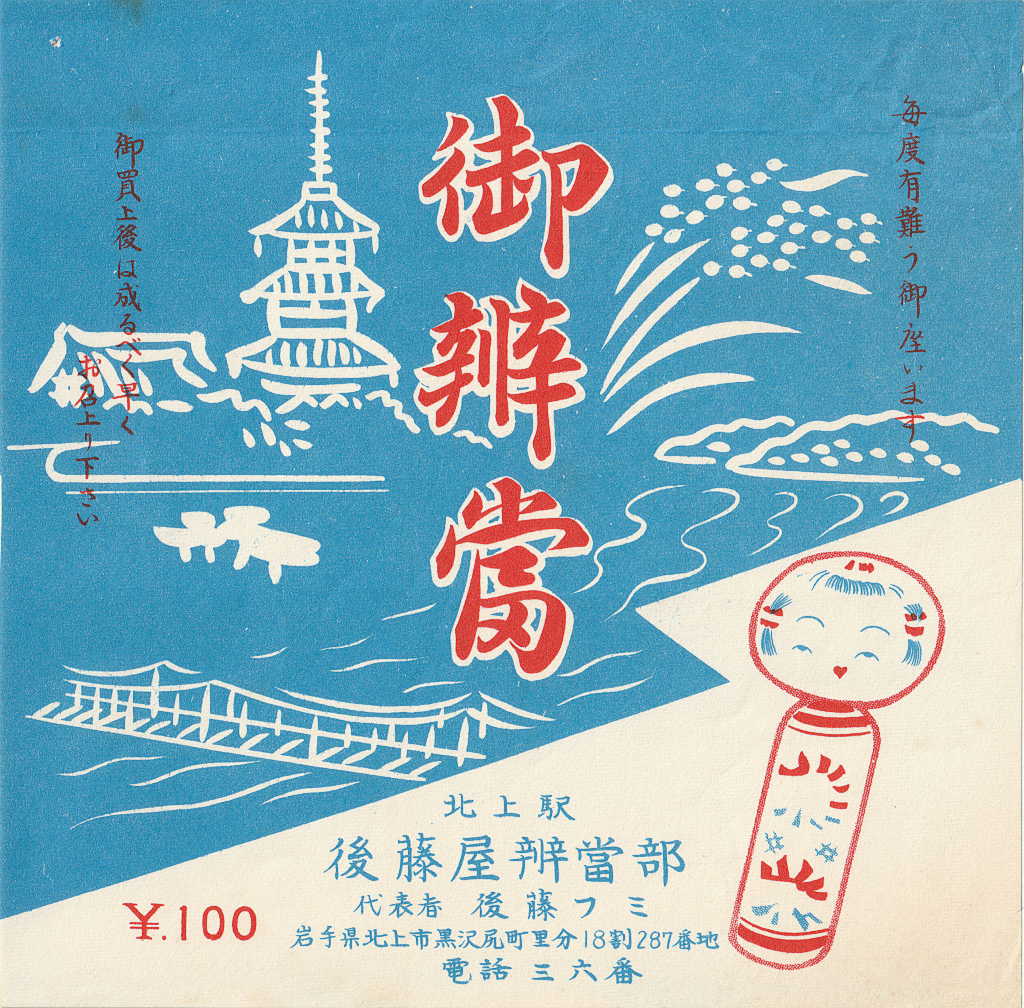 後藤屋弁当部の駅弁「御弁当」100円、の掛け紙。