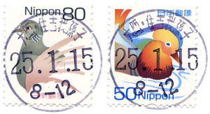 今年は交換日の初日に郵便局に行けず、初日印は作れなかった。