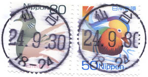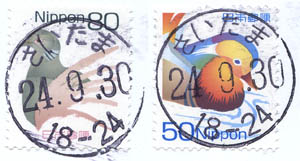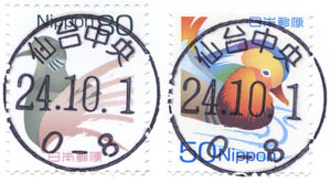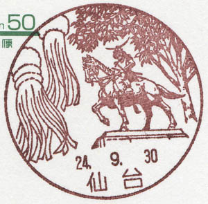 10月1日からは『仙台中央』となりまたが、旧・支店の風景印消印には、年活字の下には線はありません。