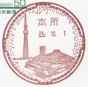 10月1日より、本所支店と統合した新・本所郵便局は旧・本所支店で使用していた風景印と同じ意匠に変わりました。