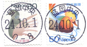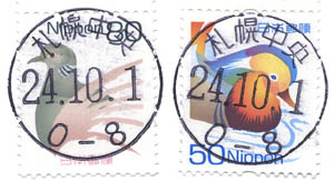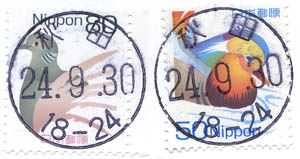 まさか、2枚の台紙とも、80円に9/29、50円に10/1の日付が押印されるとは・・・・