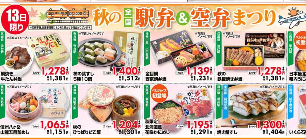 月に一度のベルジョイデーの10月13日、スーパーアークスに行ったら秋の駅弁空弁まつりをやっていた。