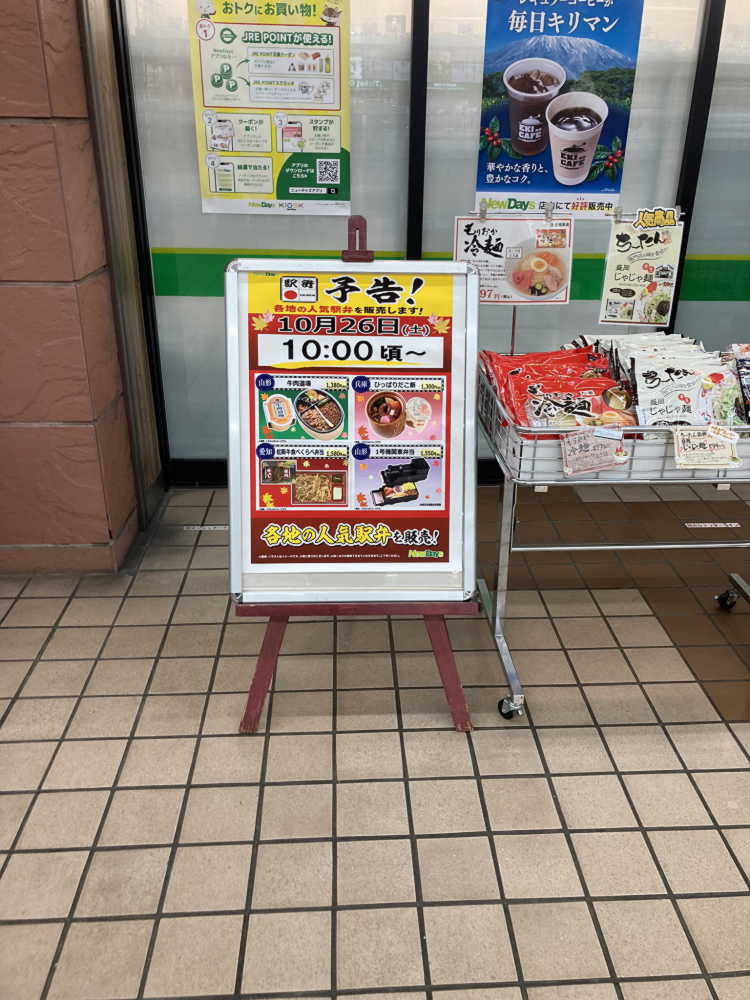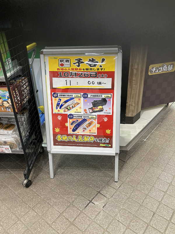 10月26日(土)の駅弁発売予告の立看が出ていた。