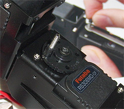 で、その後、サーボーホーンに指リンクを取り付ける仕掛けをネジで作る。