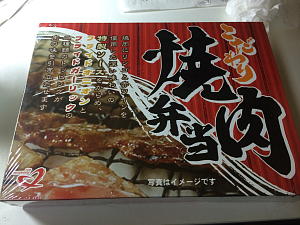 掛け紙に、焼肉にリンゴと赤ワインを使用した深い味わいの特製ソースをからめ、フライドオニオンとフライドガーリックの二種類のトッピングが肉の味を引き立たせます、とある。