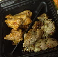 左から上がトマトソースのチキンソテー、下がバジルソースのチキンソテー。