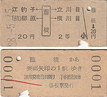 HOME ≫ Entry no.5320 「矢印式乗車券 藤根駅発行 立川目駅、柳原駅開業当日」 ≫ [5327] [5326] [5323] [5325] [5324] [5320] [5322] [5319] [5318] [5321] [5317]