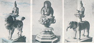 【毘沙門堂】 立花村大字立花にあり展勝地道路より数町にして達す、國見一山の一の如く、右記に助國山萬福寺玉壽山萬福寺の二つの山号あり嘉祥三年慈覺大師の開基と傅へられ慈覺大師作の畏沙門天の像(御丈三尺三寸七分)定朝作の二天王(御丈五尺三寸同五尺一寸)二躯が安置せられ何れも國寶として指定せらるる。