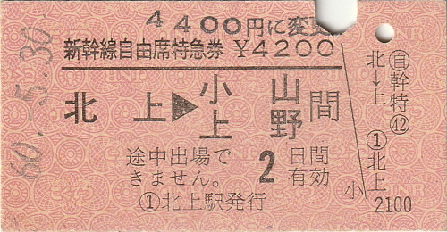 ≪ みちのく特急券 裏面に[事故] |PageTop| 北上駅 普通乗車券 3種 ≫