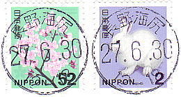 海尻郵便局並びに海尻簡易郵便局として風景印と日付印の押印を郵頼した。