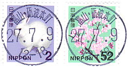 風景印の意匠は基本的には変わっておらず、局名をすれるスペースを確保するため、若干小さくした。