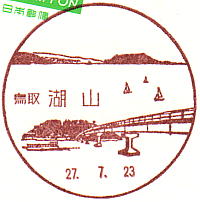 風景印には、湖山池と池の中の青島、青島に架かる青島大橋が描かれている。