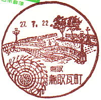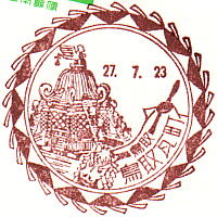 旧印には鳥取しゃんしゃん祭の傘と、きなんせ広場が描かれていた。