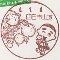 JPの図案説明には「地元名産の「やまじょう梨」と四日市市マスコットキャラクターの「こにゅうどうくん」を描く。」とあるが、、、、。