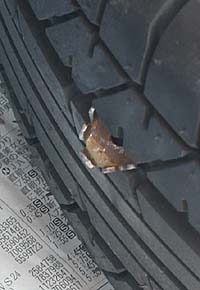 見事にタイヤの溝に食い込んでいました。