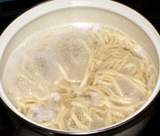 ゆで3分。見ているうちに「赤いきつね」を連想する。