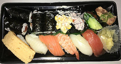 鉄火巻きの並べ方が違う、イクラ軍艦の向きが逆、海老も逆。