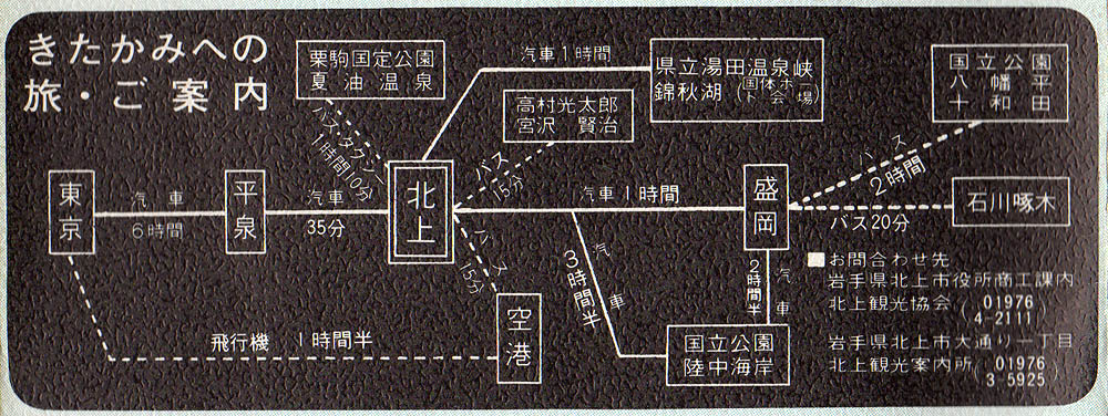 いつの頃か判りませんが、「きたかみへの旅・ご案内」には、東京-花巻空港間1時間半とあり、大阪万博の出演写真が載っていますので、その間であることは間違いないでしょうが、さて、いつでしょ。