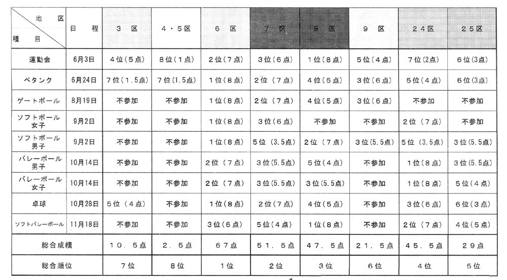 6区は最後のソフトバレーが3位であった以外は優勝か準優勝。