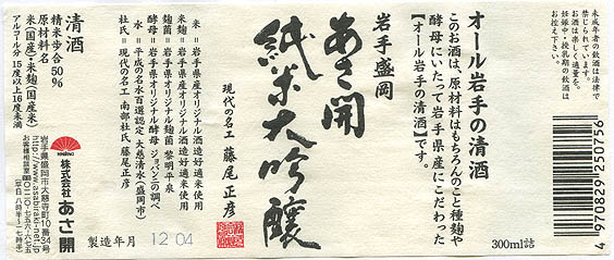 オール岩手の清酒ですが、これにはオール岩手ぶりが書かれています。