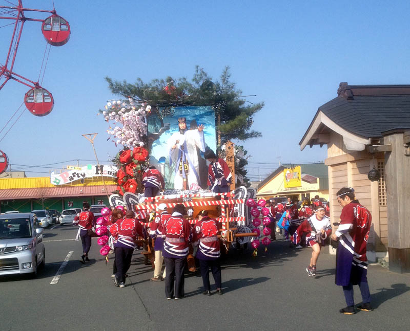 黒沢尻6区の山車がアメリカンワールドで休憩。
