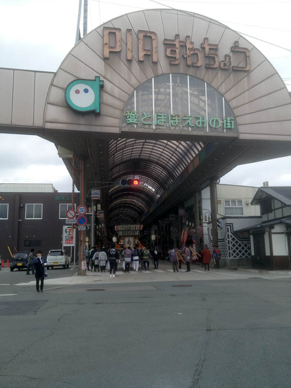 PIAすわちょうのアーケードの下を進む北神会の神輿。