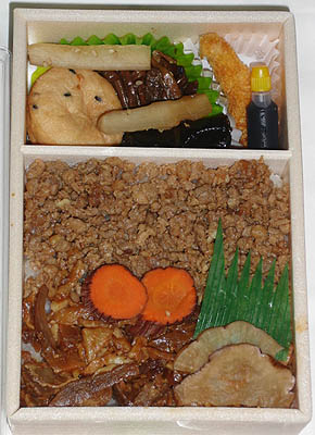 さて中身ですが、肉系の弁当は、レイアウトも色も似たり寄ったりになっちゃいますね、どうしても。