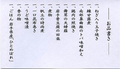 お品書きが入っていました。