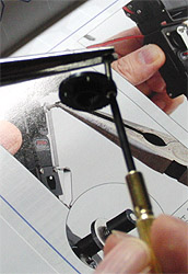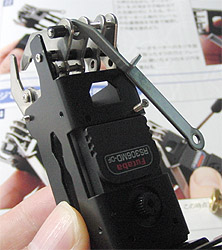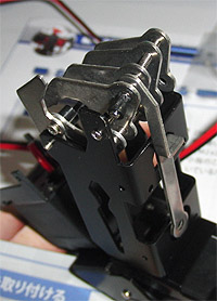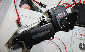で、その後、サーボーホーンに指リンクを取り付ける仕掛けをネジで作る。
